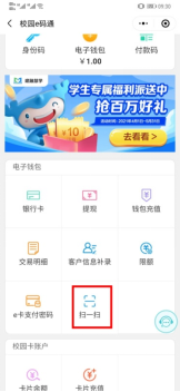 6.付款时点击“付款码”,可选择“电子钱包”或“校园卡”进行扫码支付。注:“校园卡”扣除的是实体校园卡内的资金。“电子钱包”扣除的是绑定银行卡的资金。