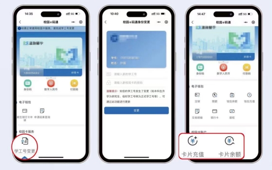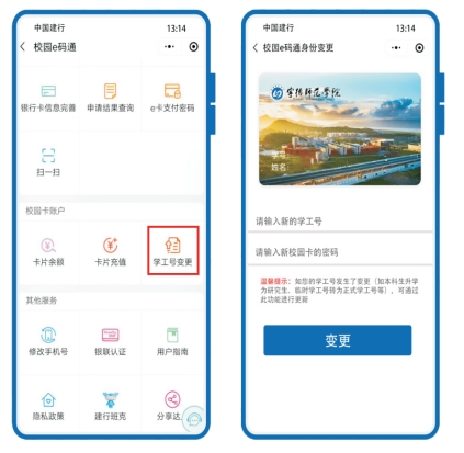 可点击学工号变更—输入新的学工号和新的校园卡密码